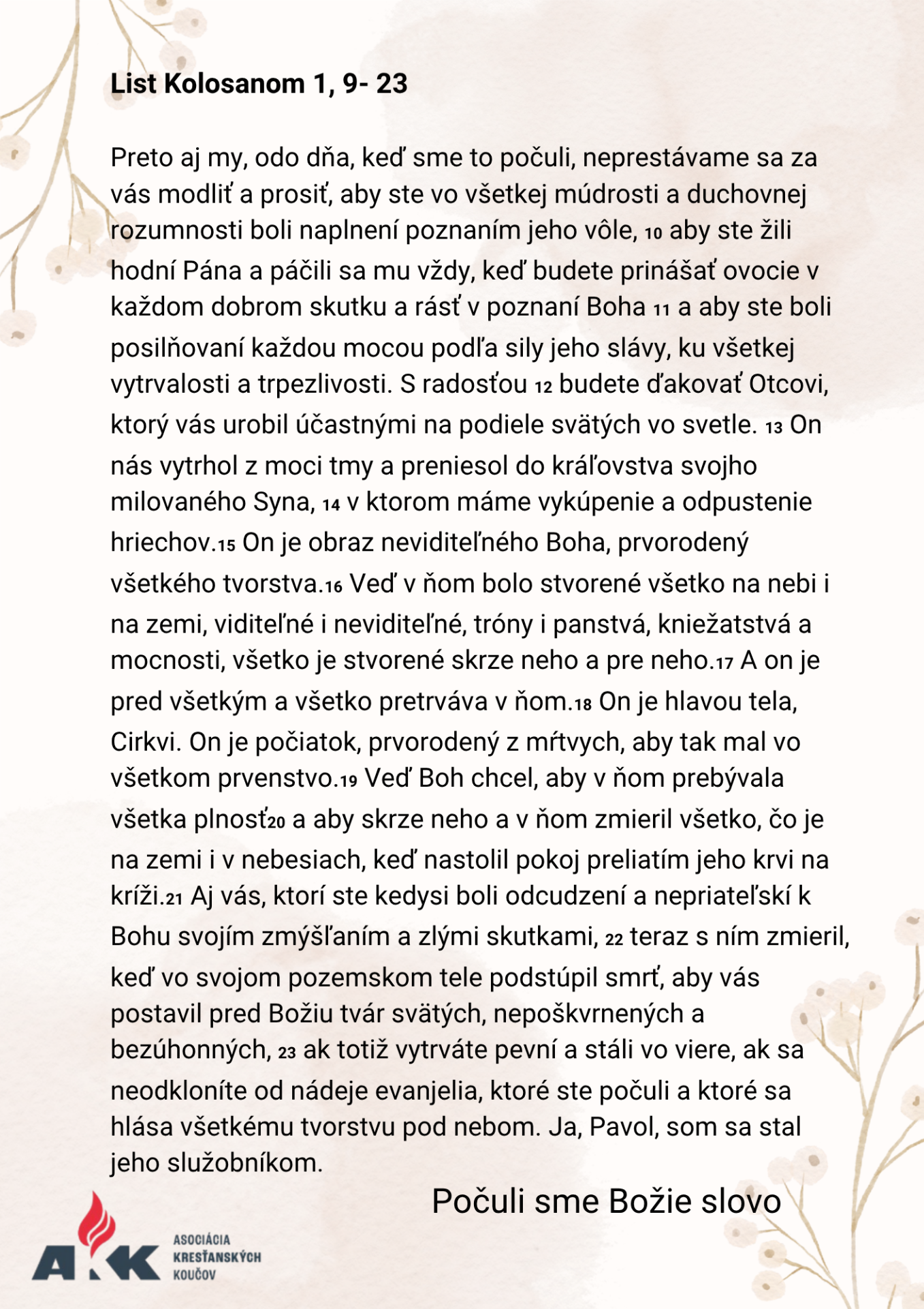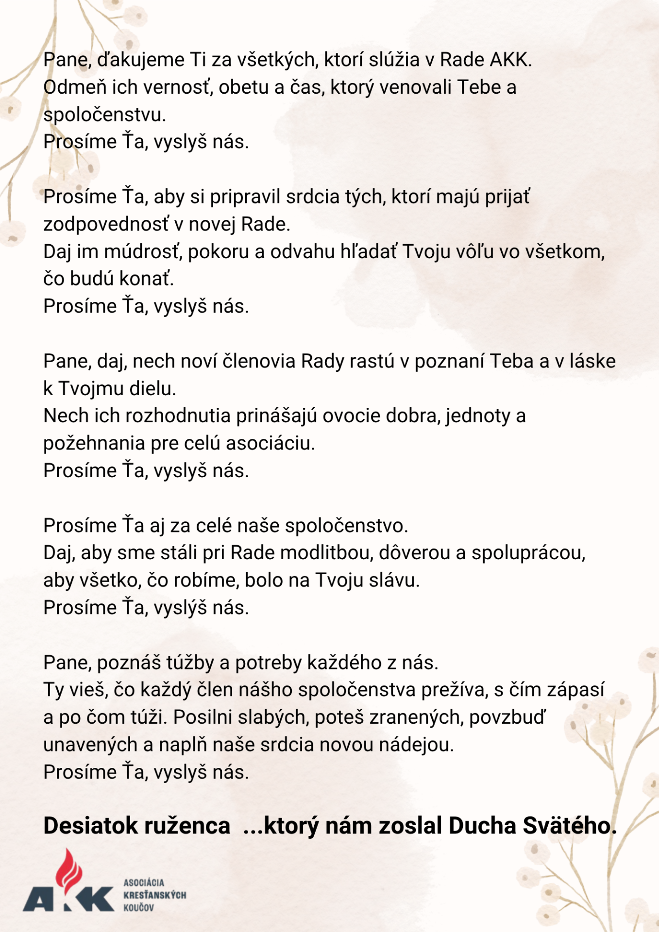 V tejto časti sa nachádzajú materiály z posledného spoločného večera modlitby AKK, ktorý sa koná vždy v prvý pondelok mesiaca. Všetci ste vítaní priamo na stretnutí kliknutím na tlačítko nižšie alebo sa môžete modliť aj súkromne na naše spoločné úmysly.