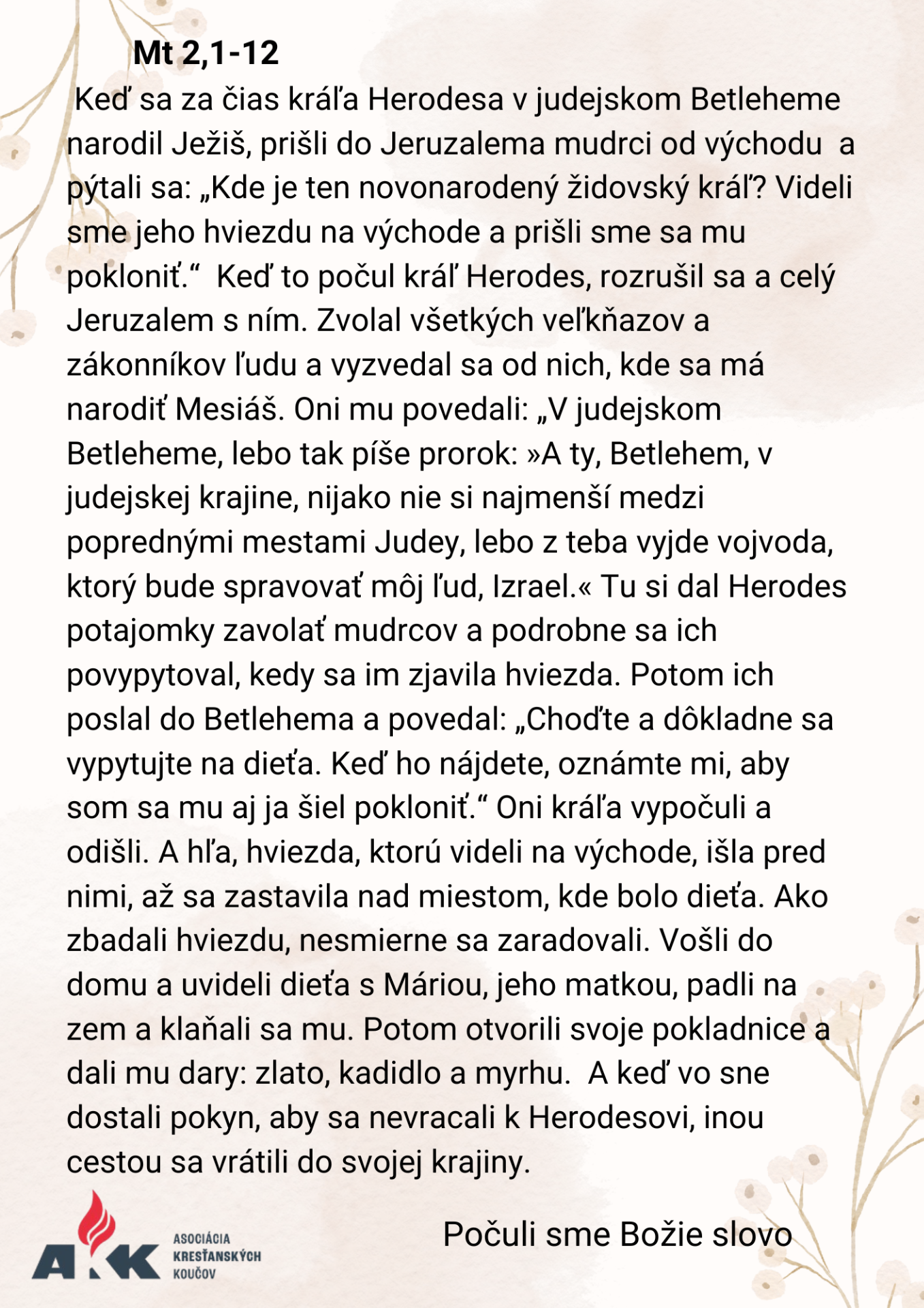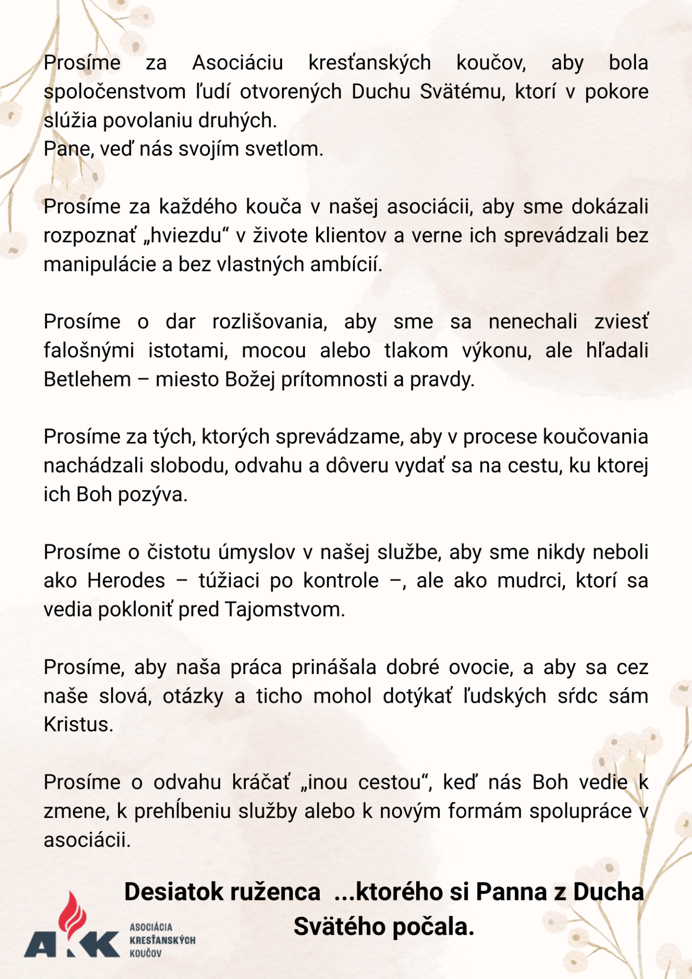 V tejto časti sa nachádzajú materiály z posledného spoločného večera modlitby AKK, ktorý sa koná vždy v prvý pondelok mesiaca. Všetci ste vítaní priamo na stretnutí kliknutím na tlačítko nižšie alebo sa môžete modliť aj súkromne na naše spoločné úmysly.